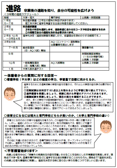 進路に関する記事を増やした1年生の学年通信(第6号ウラ面)